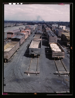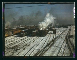 General view of part of the Proviso yard of the Chicago and Northwestern railroad, Chicago, Ill. In the background is the coal chute and roundhouse
