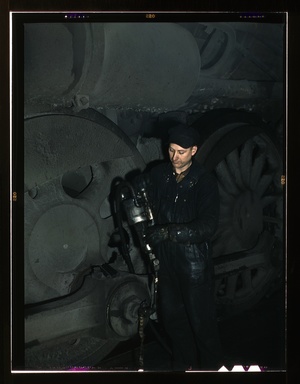 Melrose Park (near Chicago), Ill.; C & NW RR; Roy Nelin, a box packer in the roundhouse at the Proviso yard