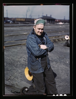 Mike Evans, a welder, at the rip tracks at Proviso yard of the C & NW RR, Chicago, Ill.