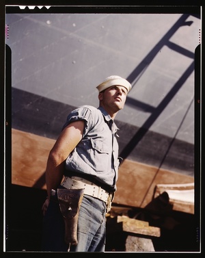 With a woman's determination, Lorena Craig takes over a man-size job, Corpus Christi, Texas. Before she came to work at the Naval air base she was a department store girl. Now she is a cowler under civil service