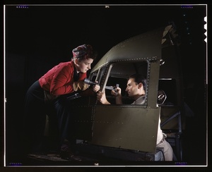 Riveting team working on the cockpit shell of a B-25 i.e. C-47 bomber at the plant of North American Aviation, Inc., Inglewood i.e. Douglas Aircraft Company, Long Beach, Calif.