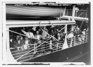 Stewards of OLYMPIC cheering reservists on ADRIATIC