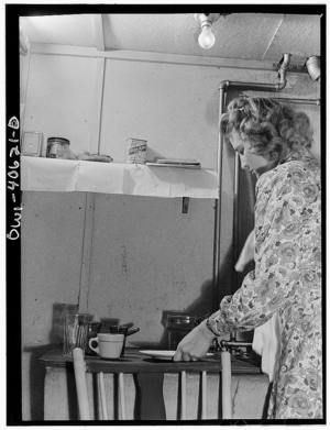 Washington, D.C. Lynn Massman, wife of a second class petty officer who is studying in Washington, preparing dinner