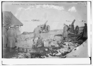 Austrian guns in firing position in Rus. i.e., Russian Poland