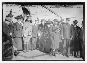 Departure of JASON: Mrs. Chas. Saltzman, Mrs. Lawton, Major Lawton, C.O. Laughlin, Mrs. L. Wood, Mrs. W. Draper, G. McAneny, G.R. Adamson, Lt. Com. C.E. Courtney