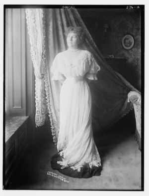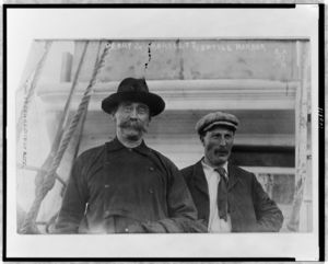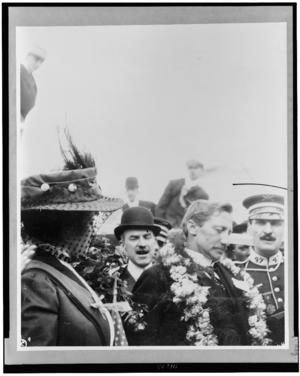 Dr. Frederick A. Cook and wife on ship, Grand Republic, head-and-shoulders portraits, facing right
