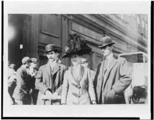 Orville Wright, William Wright, and Katharine Wright, half-length portraits, standing outdoors