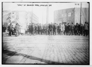 Ball fans, ice cream vendors outside Brooklyn Park, opening day, New York