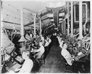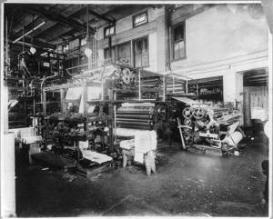 Newspaper publishing - N.Y. Herald: Composing room and linotype machines