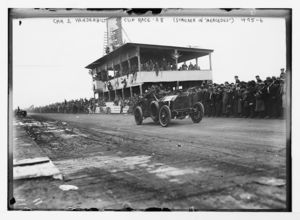 Vanderbilt Cup Auto Race, Sticker in "Mercedes" Car 3 before crowd