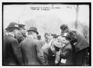 Anarchists - Police searching Max Dolinger after bomb throwing in Anarchist riot. Union Sq., New York