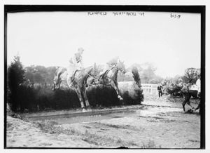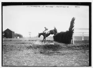 J.C. Wilmerding riding "Mystery", jumping hedge, Plainfield Horse Show