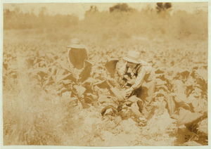 Hayward and Harry Bentley suckering the tobacco. Location: Hebbardsville, Kentucky / Lewis W. Hine.