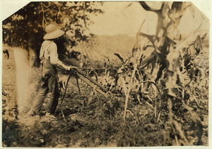 George Barbee, 13 years old hoeing. Lives near Bell School. Location: Nicholas County, Kentucky / Lewis W. Hine.