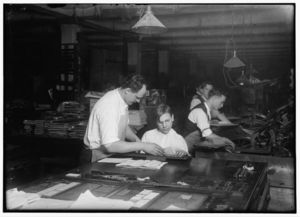 Louis Gitney, a young compositor earning $7.00 a week in a Sixth Av. (N.Y.) printing office. He learned the trade at Public School 64. L.W. Hine, Feb. 1917. Location: New York, New York (State)