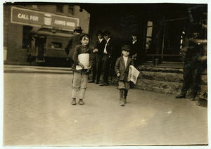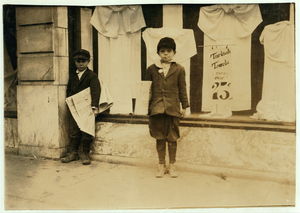 Jack and Jesse Ryan, truant newsies who were photographed during school hours. See 4756. Location: Oklahoma City, Oklahoma / Lewis W. Hine.