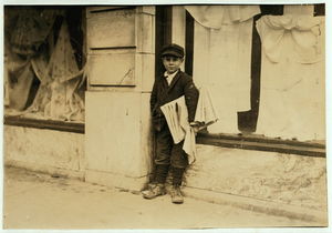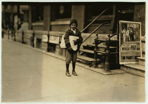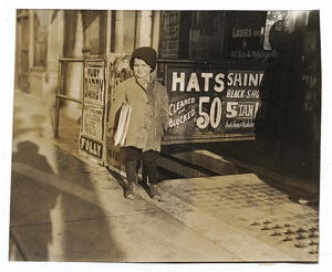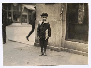 10-year-old truant newsie, selling during school hours Said: "I been sich i.e., sick with pneumonia". Location: Oklahoma City, Oklahoma / Lewis W. Hine.