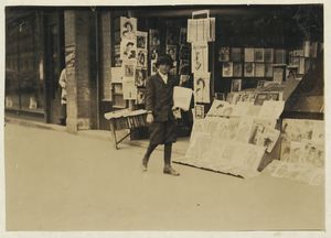 8-year-old truant newsboy, who didn't know his name nor where he lived. Said he had just had the measles. Photographed during school hours. Location: Oklahoma City, Oklahoma / Lewis W. Hine.