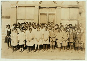 75 Sixth Grade children (colored) crowded into 1 small room in an old store building near Negro High School, with 1 teacher. Location: Muskogee, Oklahoma / Lewis W. Hine