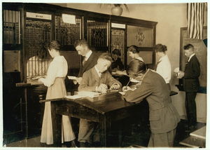 The Bank section of Commercial Room in Central High School. See Bliss report. Location: Muskogee, Oklahoma / Lewis W. Hine.