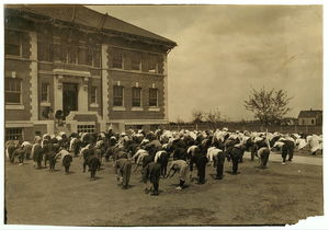 Calesthenics i.e., calisthenics Every day, every school in Lawton has 15 minutes of this out-door work. Location: Lawton, Oklahoma / Lewis W. Hine.