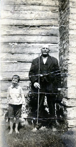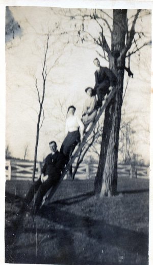 Having some fun at the Moore place. Unsure who this guy at the top is. Caption says elmer.