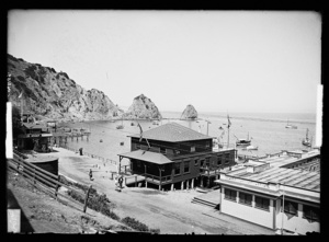 Wharf, aquarium, and ticket office, Avalon, Catalina Island, Calif.