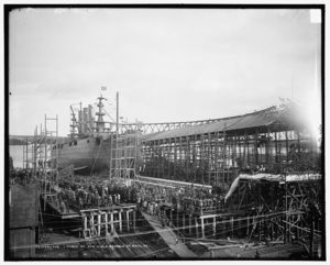 The Start, launch of U.S.S. Georgia at Bath, Me.