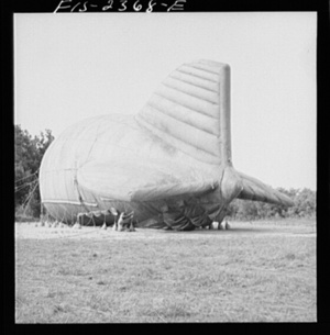 Parris Island, South Carolina. Special United States Marine units in training bedding down a big barrage balloon