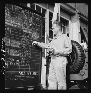 Parris Island, South Carolina. The operation board at the U.S. Marine Corps glider detachment training camp