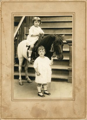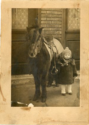 A young Laura Sonnenberg with a pony in Brooklyn in 1917 or 1918