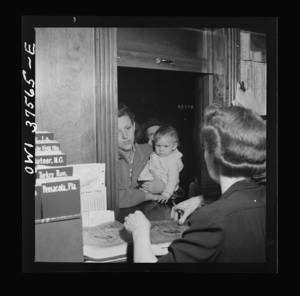 Cincinnati, Ohio. Asking for information at the ticket desk in the Greyhound bus terminal