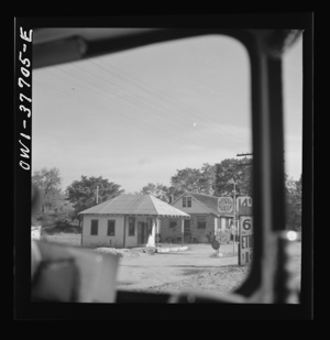A deserted gas station between Chicago, Illinois and Cincinnati, Ohio as seen from a Greyhound bus