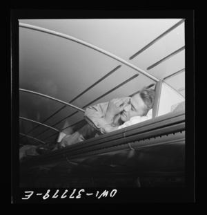 Cincinnati, Ohio. Bernard Cochran, a Greyhound bus driver, going into the house with his family. His wife and children drive down to the terminal to pick him up after work