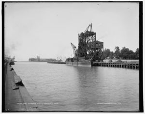 Unloading ore at Conneaut, Ohio, Brown conveying hoists