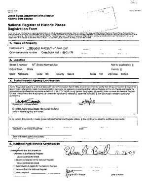 Sokol, Telocvicna Jednota "T.J.", Hall
