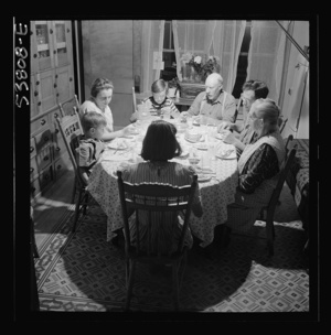 East Montpelier, Vermont. The Charles Ormsbee family and his widowed mother, Mrs. Myrtle Ormsbee, at dinner