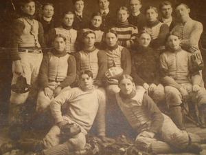 From Raine Parsons: "Elwood High School in Elwood Indiana. Probably about 1900. The good looking one on the bottom left is my great grandfather.
