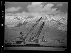 Columbia Steel Company at Geneva, Utah. Draglines are working day and night excavating for the building of open hearth furnaces for a new steel mill which will make important additions to the vast amount of steel needed for the war effort