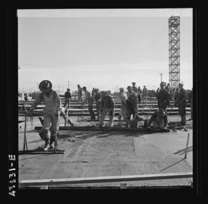 Columbia Steel Company at Geneva, Utah. Steel and concrete go into place rapidly as a new steel mill takes form. The new plant will make important additions to the vast amount of steel needed for the war effort