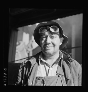 Columbia Steel Company at Geneva, Utah. An electric arc welder helping in the construction of a new steel mill which will make important additions to the vast amount of steel needed for the war effort