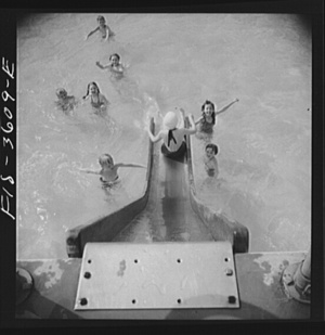 Greenbelt, Maryland. A constant stream of water runs down the swimming pool slide