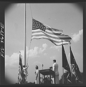 Greenbelt, Maryland. Lowering the flag at Memorial Day ceremonies conducted by the American Legion