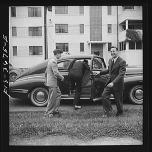Greenbelt, Maryland. Greenbelt men commute to Washington, alternately sharing each other's cars