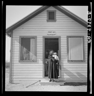 While the mothers are working in the fields, the preschool children of migrant families are cared for in the nursery school under trained teachers, Kern migrant camp, California