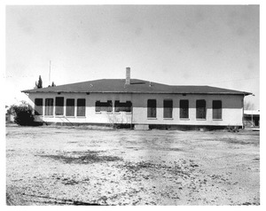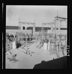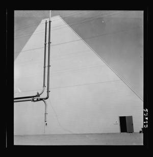Las Vegas, Nevada. One side of a huge peat storage building on the Basic Magnesium Incorporated grounds in the southern Nevada desert, which produces great quantities of the lightest of all metals for aircraft manufacture
