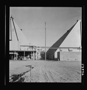Las Vegas, Nevada. Buildings of the Basic Magnesium Incorporated plant in the southern Nevada desert, showing a peat storage building at the left