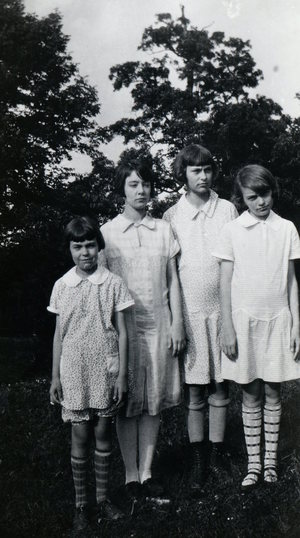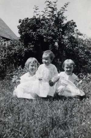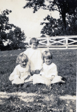 Three moffett girls at the Moore Homeplace summer 1920 or 1921