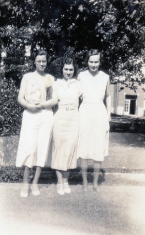 Three moffett girls at the Moore Homeplace summer 1920 or 1921