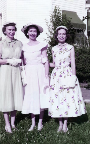 Three of the Moffett Girls in their sunday best for Easter, 1956